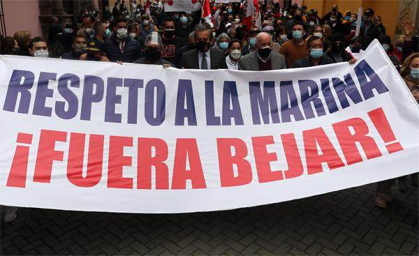 2021年8月17日,秘鲁卡斯蒂略政府外交部长贝哈尔由于发表不当言论被迫辞职。图为秘鲁民众举行游行示威,对贝哈尔的不当言论表示抗议。 2020年新冠疫情暴发以来,拉美左翼政党在地区的政治空间不断得到拓展。2021年,秘鲁、洪都拉斯、智利左翼政党相继赢得总统选举;哥伦比亚左翼政党“进步运动”的发起人、波哥大前市长古斯塔沃·佩德罗在该国2022年大选民调中遥遥领先;巴西左翼劳工党人、前总统卢拉获得2