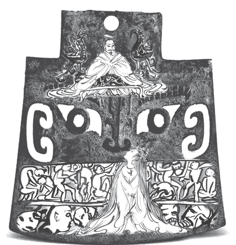 一 江鼓声响起的时候,西山顶上的月亮正好从云层里出来。月亮的颜色也如贞人所预料的那样,疹人的血红,这样的夜晚,正是祭祀的好时候。 微跪在祭台旁,已经好几个时辰了,她看着身后的那头牛,被一根麻绳牢牢地拴在石柱上,它是这次祭祀要用的牺牲,等到月亮再次没入云层后,它就要被杀掉,送给上天的雨神。牛没有意识到自己的处境,看到主人微在身边,它安心地沉默着。 巫人们穿着黑红色的长袍,衣服上饰有饕餮的花纹,