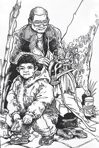 拥挤的病房里,没有鲜花,没有蛋糕,更没有美酒与佳肴;只有夏天的阳光随意地穿过玻璃,友爱地洒在八十八岁老人慈祥的脸上。条纹病号服的纹路越发清晰,像老人脸上难以掩藏的经历。依然按照医生的嘱咐,三瓶盐水半碗米糊……父亲没有抱怨这样的庆生,因为这是他一向喜欢的极简主义的纪念方式。他在光里,一如往常,幸福地微笑着。他的苦难,他的自豪,都在他不悲不喜的浅笑里。 1951年元月,年仅十七岁的父亲,凭着一腔男儿