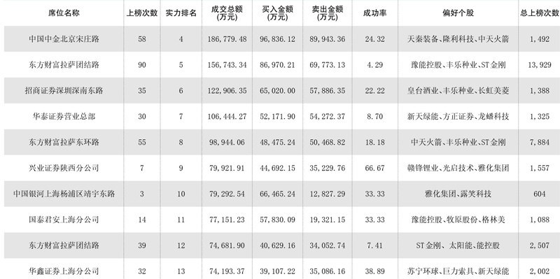龙虎榜成交额前10名偏好个股 龙虎榜净买入额前10名偏好个股