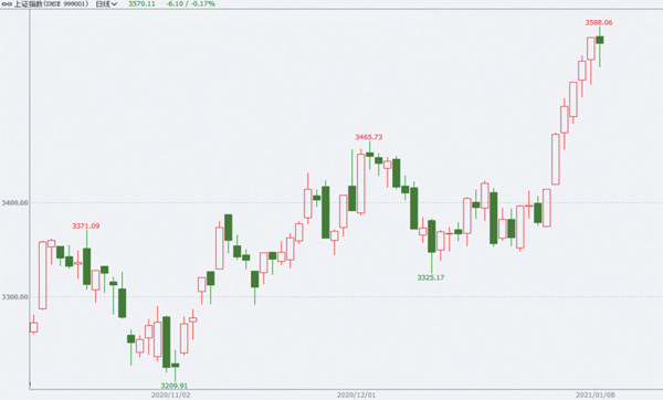 北向资金净流向图(2020年12月7日-2021年1月5日)