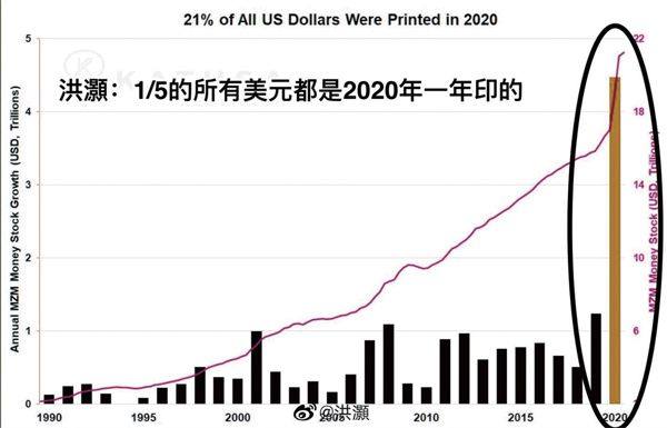 投资时钟的指向已经十分明显,2021年极有可能是周期品的天下。 2020年,为应对疫情带来的经济增长停滞,G20各国实施了数轮财政刺激计划。美联储、日本央行和欧洲央行迅速扩产资产负债表,资产总额增长了5.8万亿美元。美国、德国、日本和英国的刺激规模都在GDP的10%以上。其中,美联储资产负债表规模扩张最大,接近4万亿美元,总规模超过7.2万亿美元。 让人惊叹的是,2020年,美国印刷了历史上所