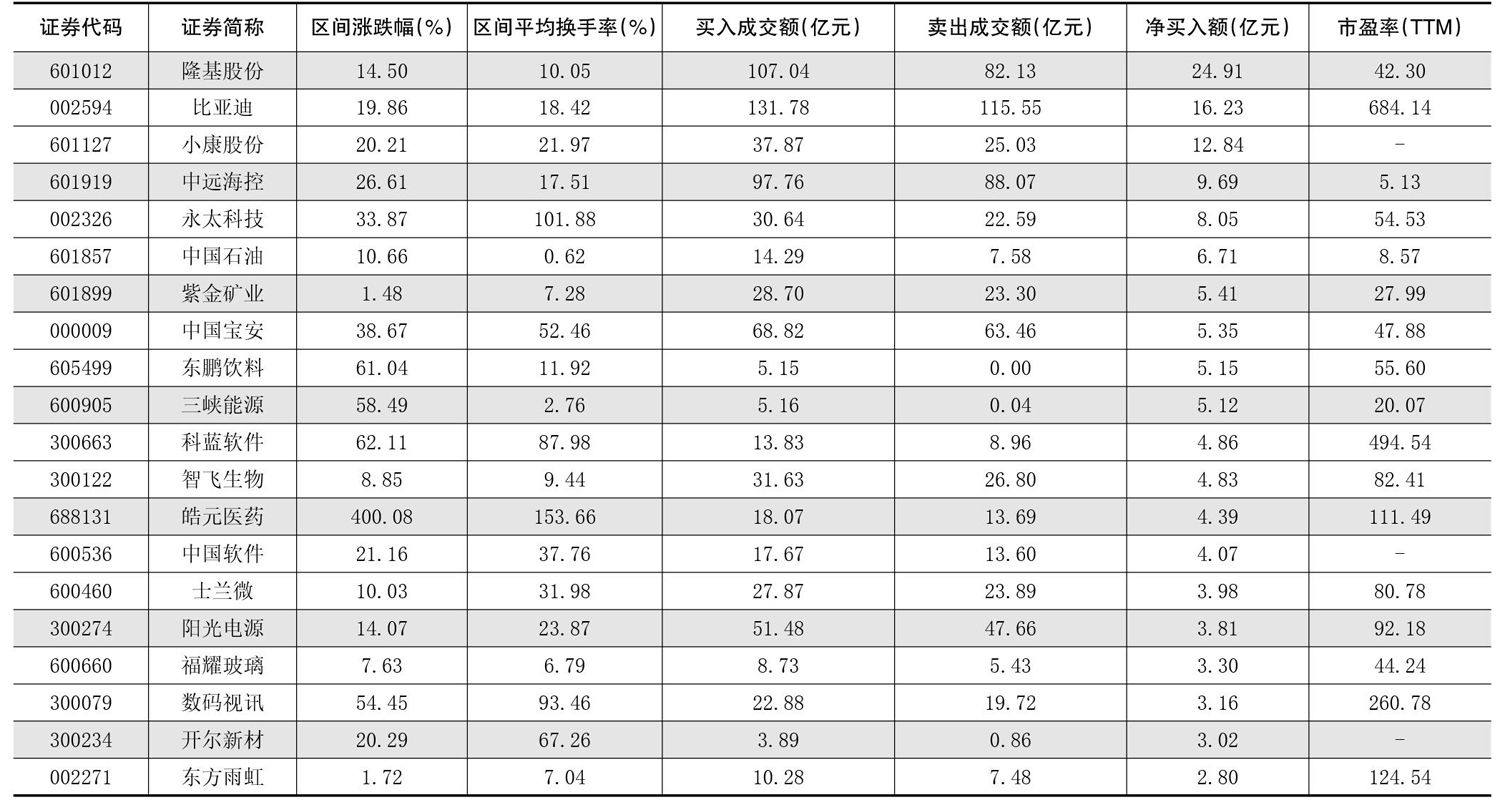 陆股通一周成交情况