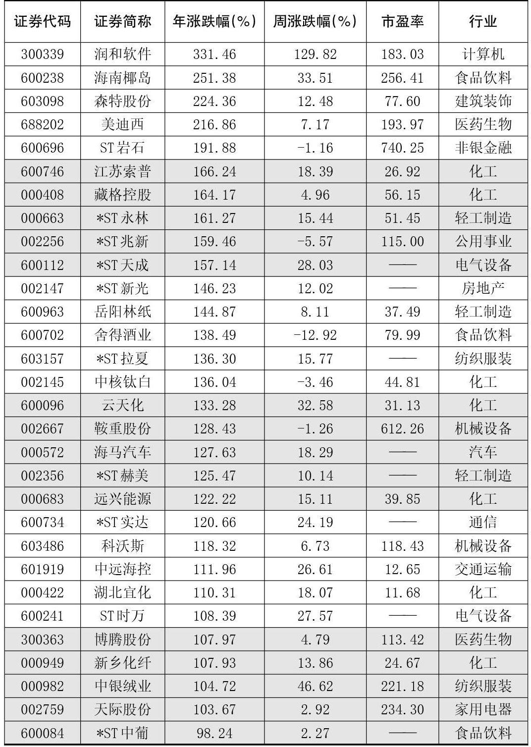 本周创出今年以来新高的股票
