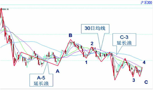 在8月19日撰写的文章中,笔者认为大盘当时“处于C-3-5浪尾声,待C-4浪反弹后,还有可能出现C-5浪调整,再回调震荡几周时间。”实际走势上,以沪深300为例,就在8月20日,指数出现了C-3-5浪段的最后一跌,随后便如期进入C-4浪反弹。(见图一) 图一:沪深300指数日K线技术分析 由图一可见,6月以来,沪深300指数的30日均线是一条明显的压力线,有多次反弹到此位置后折返。浪形方面