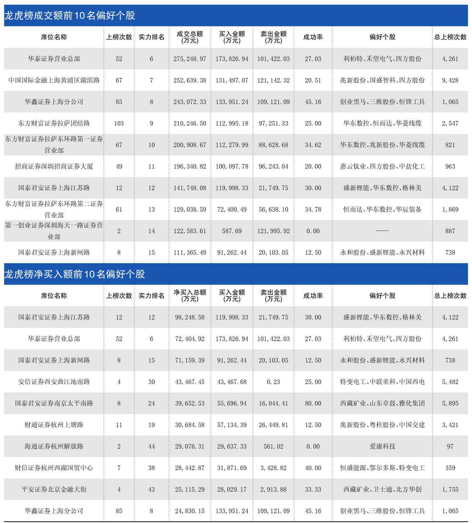 一周龙虎榜交易居前营业部买入个股