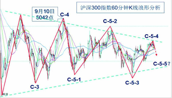 本月中旬,大盘如期获得支撑。11月10日以来的2周时间里,上证指数探底反弹了约150点。不过,观察沪深300指数,中短期均线虽然有所汇聚,但尚未进入多头排列。主要问题仍是长达四个月的横向整理何时才结束?先来分析一下当前K线的细部浪形。(见图一) 由图一可见,沪深300指数基本是在一个对称三角形之内运行,后续很可能再度回落到低点连线附近。因为,在浪形方面,延续笔者上期文章中的划分思路,沪深300指