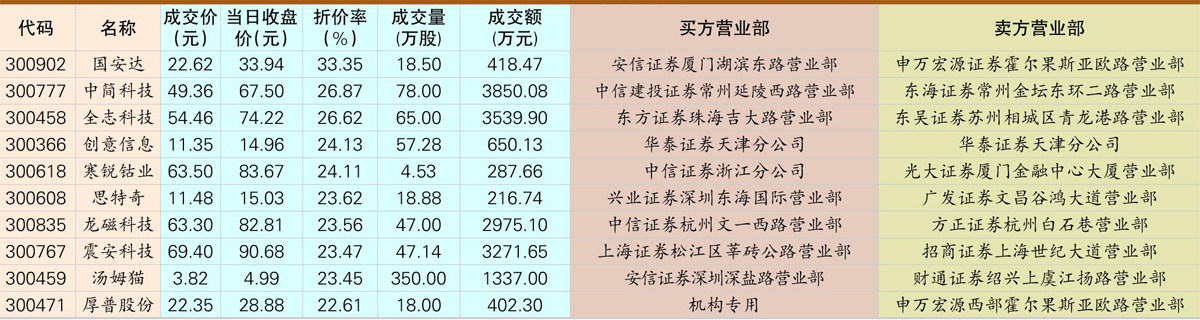 一周龙虎榜交易居前营业部买入个股