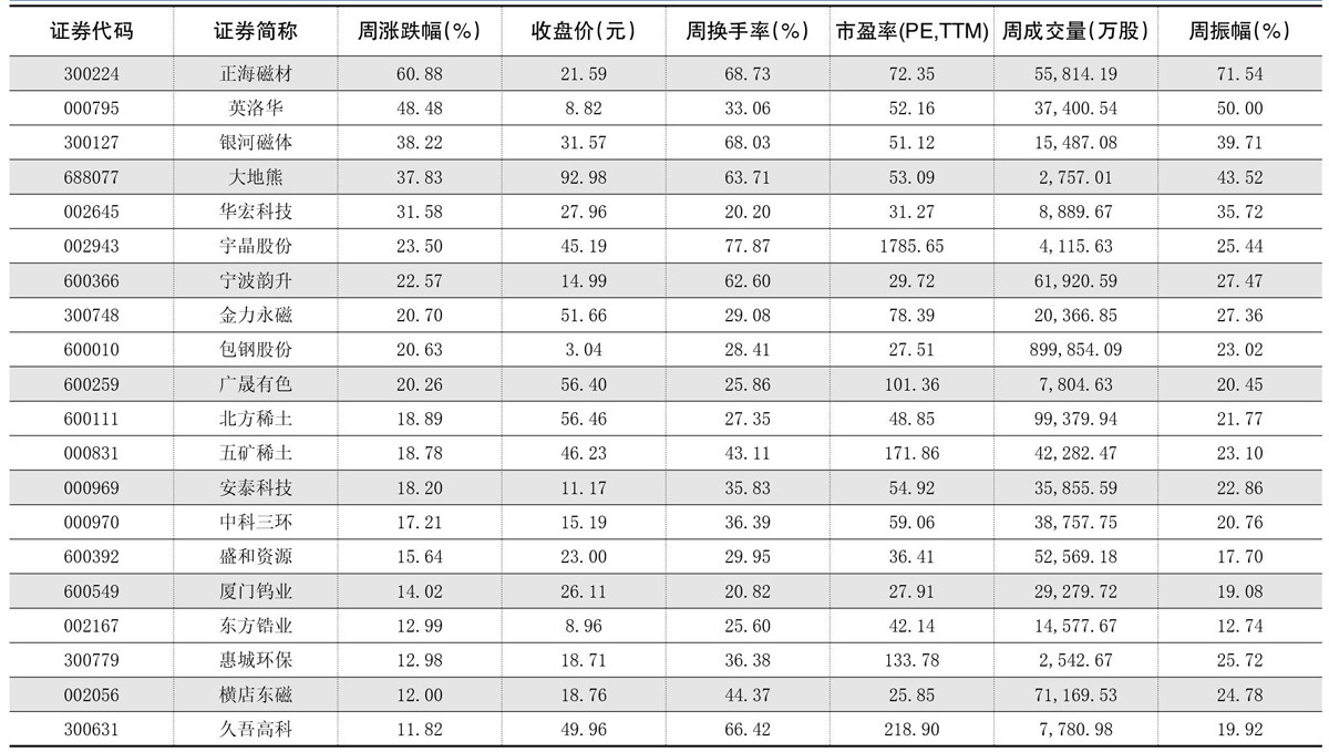 杠杆资金回暖 大买稀土永磁