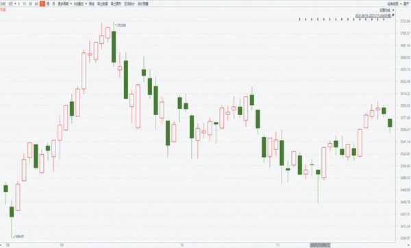 市场三大指数最近十个交易日走出了小角度向上推升的走势。震荡向上运行了一个小波段,但向上的角度并不算太陡。上证指数在11月10日的重要日线变盘时间节点上,走出了探底到了3448点并回升的走势,随后震荡向上运行,但这个上升速度并不够,深证成指和创业板指数则相对强势。 从各板块及各分类指数来看,仍然是中小盘的题材类个股表现强势一些,而权重类指数则是处于震荡盘底折腾的过程当中。代表中小盘题材类的国证20