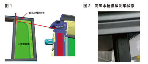 摘 要:文章根据某车型三角窗玻璃导轨与欧式导槽密封条匹配处在高压水枪洗车时漏水情况的分析,从三角窗玻璃及欧式导槽密封条实际匹配状态及设计结构进行对比分析,查出进水路径及改进方案,从而得出后续新车型类似匹配结构设计优化方向。 关键词:三角窗玻璃 欧式导槽密封条 漏水 Analysis and Design Optimization of Water Leakage of Triangle Win