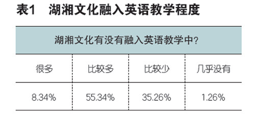 摘 要:湖湘文化承载着伟大的民族精神和深厚的文化内涵,新时代的学生了解和继承湖湘文化,并将其传播到世界是非常必要的。为了了解湖南高职英语专业学生对湖湘文化价值的认同,湖湘文化在英语教学中的现状及学生的需求,笔者进行了调研,根据问卷数据所反映的问题,提出了一些建议。希望通过本文的研究,加深学生对湖湘文化的认识,进一步增强学生的文化自信,对湖湘文化的英语教学有一定的启示。 关键词:价值认同 湖湘文化