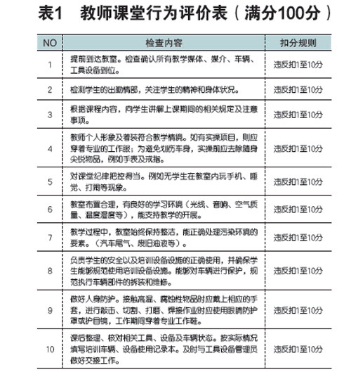 摘 要:建立科学、合理的课堂教学能力评价体系和运行制度,能够激发教师改进教学的积极性,持续优化课堂教学质量。本文分析了高职学校专业课课堂教学评价的现状与问题,基于在校企合作项目中对教师的评价反馈的模式和实践经验,以汽修专业为例对课堂教学能力评价形式及评价内容的优化进行了探索。 关键词:校企合作 教学能力评价 汽修专业 教育部《关于深化职业教育教学改革全面提高人才培养质量的若干意见》中明确提出: