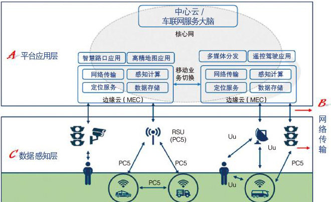 摘 要:车联网是物联网技术在交通系统领域的典型应用。本文通过研究车联网体系架构,从技术发展、市场应用等角度对比了DSRC及C-V2X两种车联网关键通信技术。最后指出车联网体系构建面临的机遇与挑战,为车联网发展路径提供智力支持。 关键词:车联网 DSRC C-V2X 商业化 随着人类对于交通安全与效率的要求逐步提高,交通工具以及道路被赋予更多智能化的功能。车联网作为打通交通各个要素环节,实现数据
