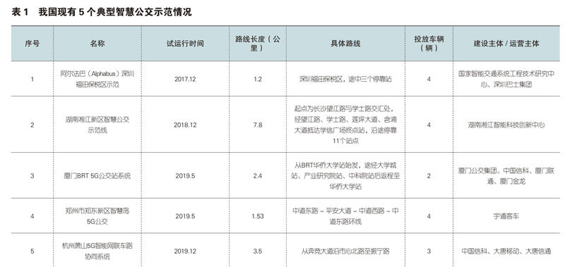 摘 要:智慧公交示范属于智能网联示范中的特色应用场景,也是智能网联开放道路示范的先行力量。本文梳理了我国现有典型智慧公交示范情况,分析其共性特点及存在问题,并对未来发展进行了展望。旨在从智慧公交视角窥见整体智能网联汽车产业发展进程,促进智能网联汽车从封闭走向开放、从示范应用走向商业化推广。 关键词:智慧公交示范 智能网联汽车 车路协同 1 前言 1.1 概述 2015年,国务院发布《中国制