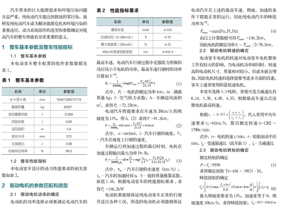 纯电动客车动力系统参数匹配与仿真