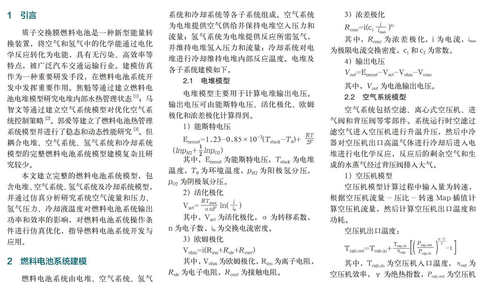 质子交换膜燃料电池系统建模与仿真分析