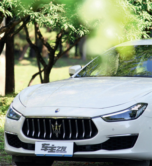从外观来看它们真的是非常相似,不同的是Ghibli的车身尺寸更加紧凑,在运动型方面更加出色。 整车使用了长车头短前悬的GT风格设计,整体看上去非常的优雅。如果把“总裁”比做中年大叔的话,Ghibli无疑是一个“年轻小伙”。 在我们拍摄过程中,时常有一些路人在说,“这个车真好看”,看来玛莎拉蒂在设计方面确实有一些独特的理解。 在细节方面,车辆的日间行车灯有些类似钻石切割的纹理,点亮时质