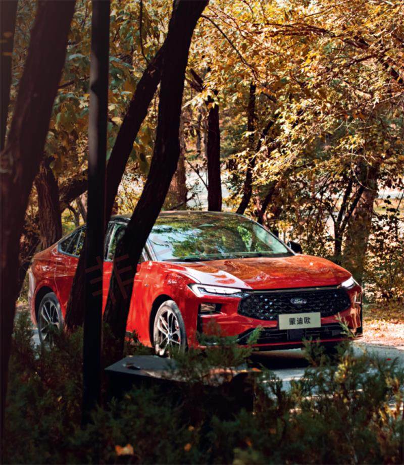 当我带着钥匙走进它,就能看到呼吸式3D鳞甲格栅缓缓张开,隐藏式门把手自动弹出,再加上车内的氛围灯和车机屏幕亮起,仪式感真的很强。大灯是分体式的,上面是LED日间行车灯,下面是远近光灯组,而且它还和前包围融合在了一起,看起来就很有攻击性。 整个侧面的层次感较强,上下撞色的设计,刻画它年轻的属性。双五辐大尺寸轮圈以及红色的制动卡钳,也更强化了运动氛围。全新一代蒙迪欧的长宽高分别为4935min、