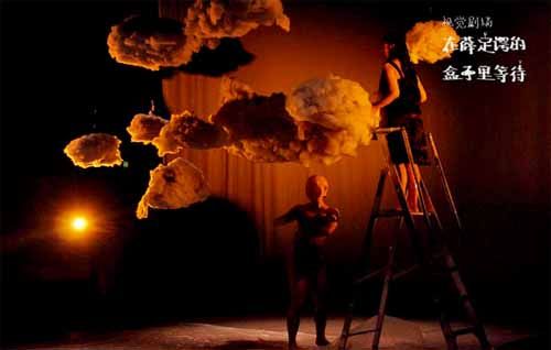 受邀参加2020年杭州戏剧节的视觉剧场《在薛定谔的盒子中等待》,由没座儿工作室出品、有个剧团制作,在浙江美术馆迎来了一场强调多种意象知觉的典型后戏剧剧场空间的讨论。 一个女孩的长发缠了气球,每一绺头发随之飞升,让人联想到奥德赛遭遇的海妖。这个对抗感觉很有冲击力。二是有点心酸的裸男,在一块云朵下孤独地洗澡,而水是有人用洒水壶从云上浇下来。三是一个人的衣服上被很多线拉拽着,帆一样要脱离头部、向上