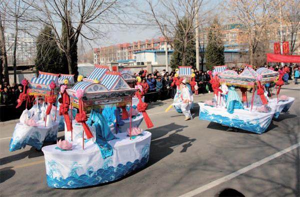 北京市非遗项目门类丰富,具有多民族、多地域文化交流交融的特色,又兼容并包南北方文化特质。希望通过这一栏目的开辟,使广大读者能够感受到流传在民众中口耳相传的民间传说、精彩绝伦的传统技艺、美轮美奂的传统舞蹈、精雕细琢的手工艺品中那一份厚重的历史文化内涵。 “延庆旱船”,是延庆民间花会的艺术形式之一,表演者运用道具和动作模拟水上行舟,具有极强的艺术性与观赏性。旱船作为一种综合性的民间艺术形式,融文学、
