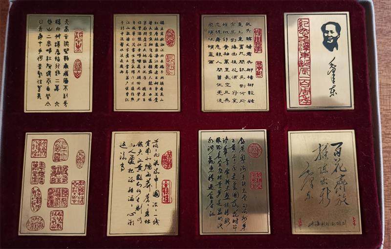我与马北愚先生是老友,他长我10岁,今年是快80岁的人了,他原供职于航天工业部,他的老领导就是大名鼎鼎的钱学森先生。老马一生都贡献给了我国航天事业,他不仅阅历丰富、学问渊博,而且书法、篆刻均好,凭借着他对毛主席发自内心的热爱,在单位的支持下,在毛主席诞辰一百周年前,采用当时最先进的纳米光刻技术,将毛主席诗词50首用真、草、隶、篆诸体制作在晶片上,每首诗歌都配有引首章及诗歌词牌章,其书法、篆刻的