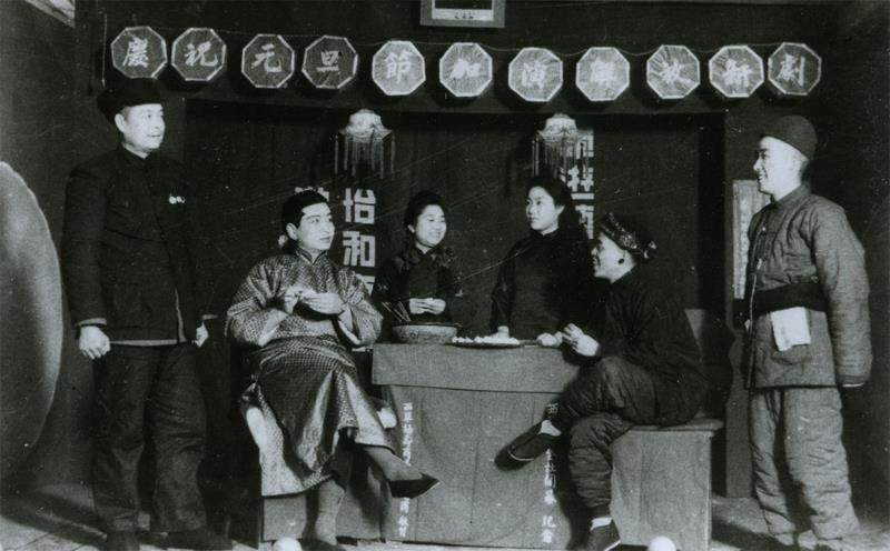 众所周知,关学曾先生是北京曲艺历史上最杰出代表人物之一。作为北京曲艺团的建团元老,关先生在新中国成立初期在发展确立北京琴书这一曲艺曲种的同时,更参与了新兴北京地方戏的创建,是北京曲剧事业的创始人之一。 在北京市曲剧团艺术传承中心的墙壁上,悬挂着一幅珍贵的历史照片,在前门箭楼的前面相聚了八位老人,他们都是解放初期著名曲艺班社——群艺社的主要成员。1950年起他们在箭楼的大众游艺社首创演出新曲剧