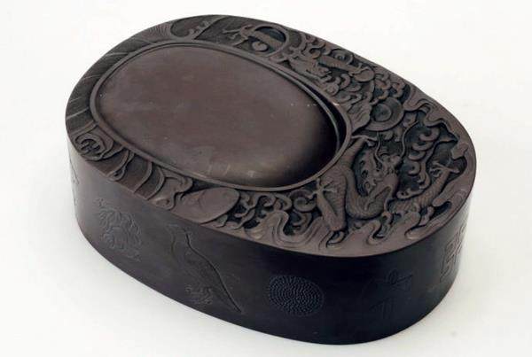 骊珠砚 俗话说:“先有潭柘寺后有北京城。”此话说明潭柘寺的历史悠久。潭柘紫石形成于两亿年前二叠纪,藏于红庙岭组地层中,产于潭柘寺马鞍山。明正统年间,宫廷设专人开采,立石碑派官吏看守。用于紫禁城太和殿御座之根基,其寓意紫气东来。清代能工巧匠雕琢成砚台,专为宫廷御用之品,故宫现有珍藏。潭柘紫石,晶莹温润,细腻如玉,精雕细琢,可与端砚、歙砚、洮砚、澄泥砚媲美。 我对潭柘紫石砚感兴趣,曾与门头沟紫石砚