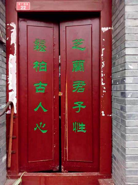 近几年北京城市建设不仅称得上突飞猛进,而且极重视传统文化的回归。老胡同及故居旧宅的改造,注重修旧如旧,在保留文明古都风貌上确实下了不少功夫。欣喜之余,笔者也发现还有提升之处——那就是正确地使用繁体字。 上半年游走西城老旧街区改造,随手拍下两张照片。 一家老宅门的楹联:“芝蘭君子性,鬆柏古人心”(图一)。其中“鬆柏”当为“松柏”无疑,错在“鬆”字。繁体字“鬆”,意思有“鬆散、鬆弛、鬆软、轻鬆”,