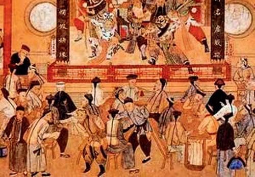 北京人过去逛大栅栏,会看见许多标名为茶园的戏馆子 ,像什么庆乐茶园、三庆茶园,隔壁粮食店胡同的中和茶园……唱戏的地方干吗非叫茶园?是以喝茶为主还是以演戏为主?告诉您,一开始乾隆年间修建的那些个老茶园,去茶园的人还真是以喝茶、聊天儿、谈生意、办事情为主。为什么这么说?一进茶园,您看一排一排摆放的长板凳,中间夹着长条桌,是对面码放着的,根本不是冲着舞台,你要想看戏,得扭脖子瞅,您这就明白了吧?看来