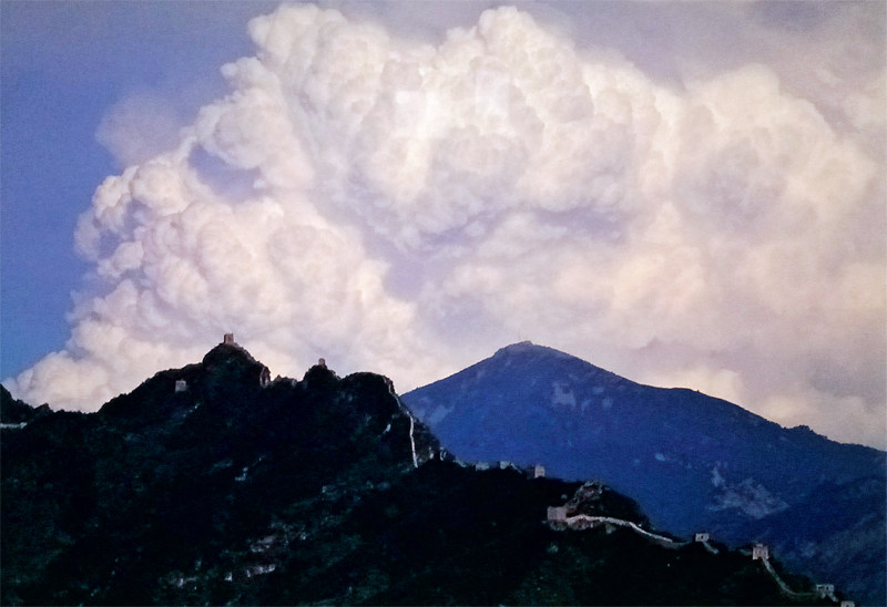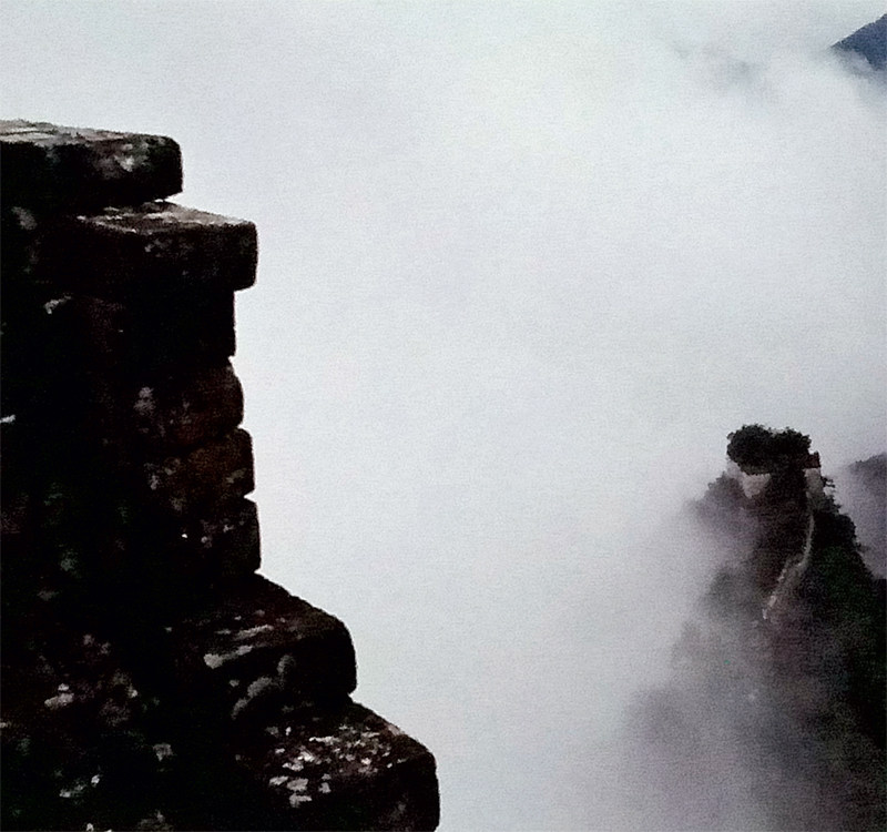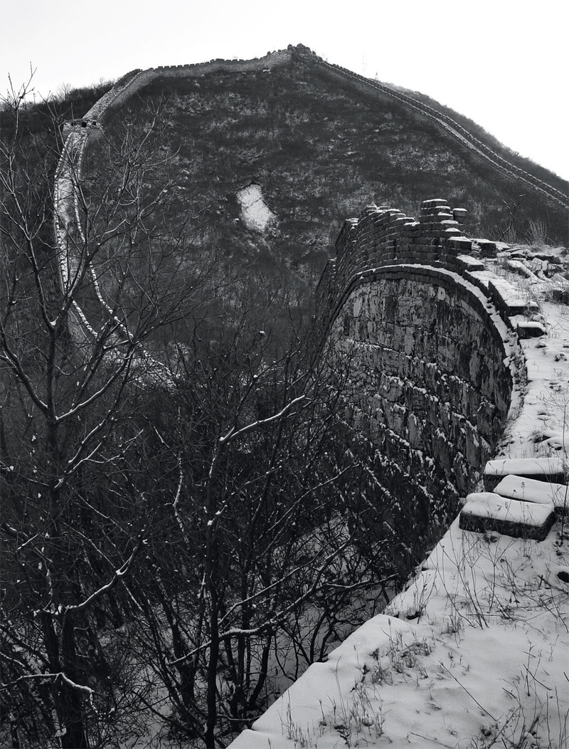 《长城——古老的联想》 摄影 陈长芬 约三十年前,作为北京中学生春游目的地之一,我在满山新绿的某个春日,登上了八达岭长城。巨大的砖石竟如此规矩、齐整地筑于山形之上……在城垛中眺望,叠翠掩映中,想象山下有敌,依此“天开叠堑”,实在是自不量力。下山合影,照片是制式的,四周白边,只底边空白处一行钢笔字体写着“不到长城非好汉”。 2000年后,京郊游开始风靡,方才知道:长城北京段之美,有居庸关横亘西北