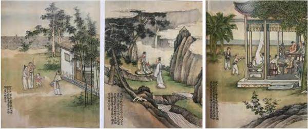 每年的7月中旬到8月中旬是一年中最热的时候。古人为了祛热消暑,采用了多种降温纳凉的方法。 国家博物馆馆藏清代徐扬《消暑图册》,内容多取材于《太平御览》与《太平广记》。描绘古人消暑故事八则并加以注释。图册绢本设色,纵23.2厘米、横18.9厘米(每开,共八开),图中对山石、树木、人物的勾勒、皴擦、晕染系中国传统绘画技法,人物面部明暗处理源于西洋绘画技法。构图严谨精妙,色彩明丽典雅,为典型的清代