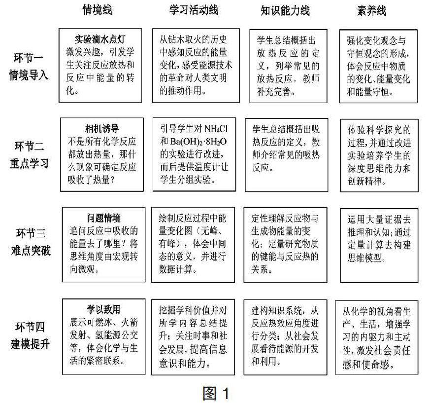 【摘要】文章指出了以素养为本的“逆向设计四线贯穿法”的教学设计思路,即纵向以课堂情境导入、重点学习、难点突破、建模提升四个教学环节展开;横向以情境线、活动线、知识能力线和素养线为四条主线,把课堂的四个环节用四条线贯穿起来,形成一个循序渐进、环环相扣的教学设计。 【关键词】逆向设计;四线贯穿法;素养;情境;学习活动 重视开展以素养为本的教学是《普通高中化学课程标准(2017年版)》的基本理念之一