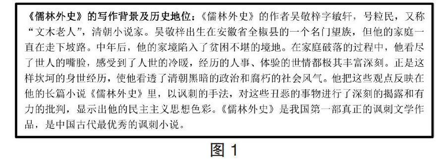【摘要】教师在教学过程中要善于借助微课,以教材的节选课文为基础,引导学生进行古典小说的整本书拓展阅读,让学生更好地感受到古典小说的艺术魅力,学习到中华民族传统文化的精髓,培养学生的整本书阅读兴趣,发展学生思维能力和表达能力,让学生在个性化的阅读体验中,形成良好的阅读习惯。 【关键词】《范进中举》;《儒林外史》;微课;古典小说;整书阅读 《义务教育语文课程标准(2011年版)》明确提出要求:“培