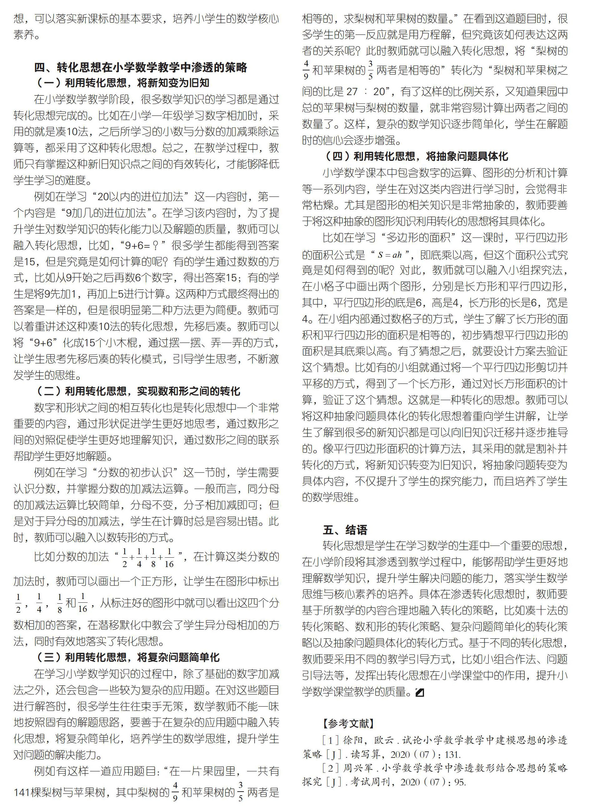 小学数学教学中转化思想的渗透与运用策略