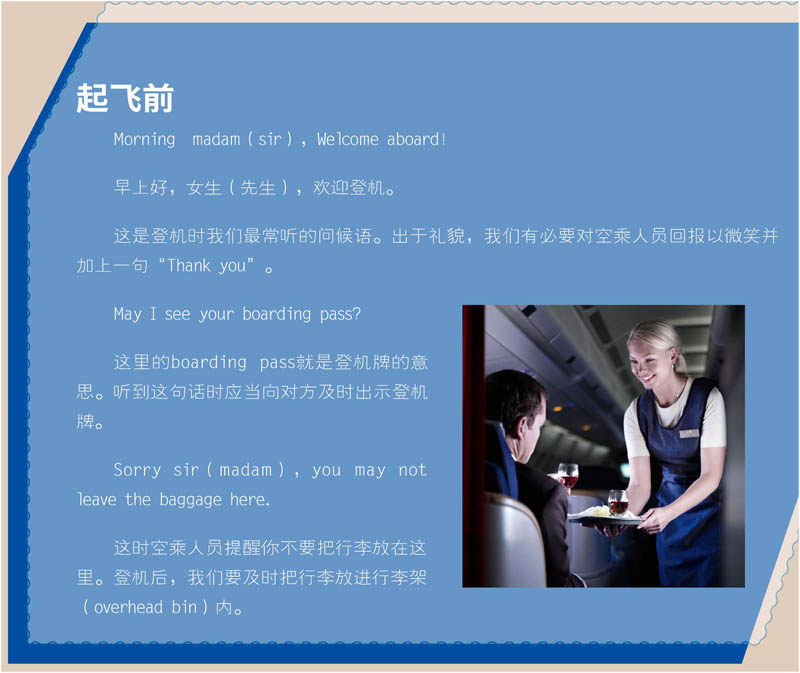 随着社会经济的发展,越来越多的小朋友有了和家人一起乘坐国际航班的机会。乘坐国际航班时,我们需要对空乘人员经常使用的英语有基本的了解。