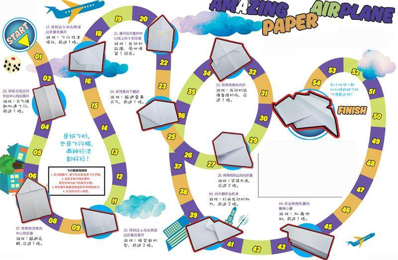 折好的纸飞机,理论上应该沿着出手方向向前飞行。然而实际制作时,很难保证两侧机身及机翼的折叠角度等完全一致,所以纸飞机总会向左或向右微微偏转。通常,小角度偏转属于正常现象,无需额外调整。但若偏转角度超过45°,就必须进行调整了。调整纸飞机偏航的方法比较简单,只需将偏航一侧的机翼微微向上翘起即可。 Jet Fighter纸飞机采用双层机翼设计,具有良好的滑翔性能,且一定程度上减小了某一侧机翼弯折