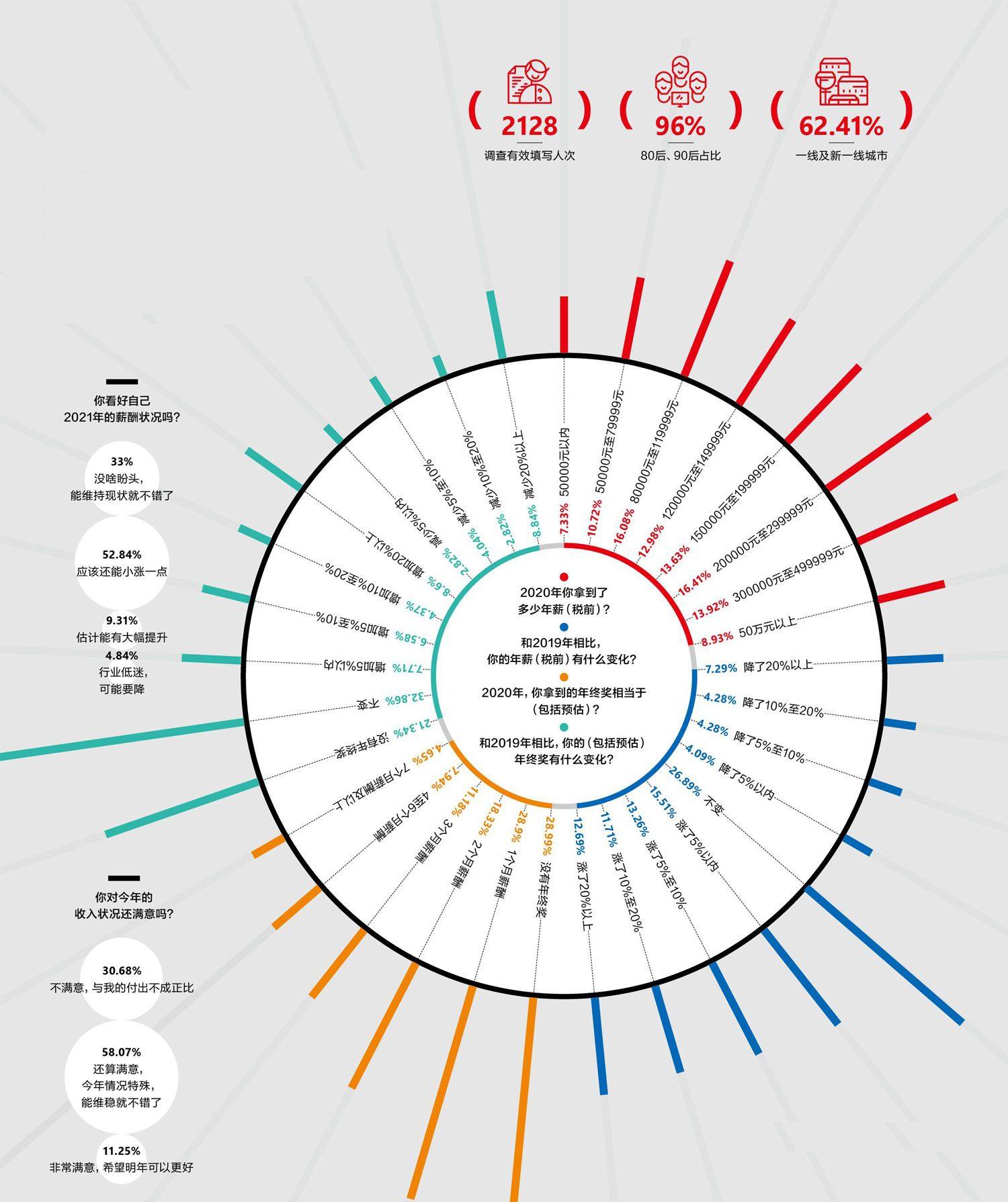 2020年公司人薪酬福利大调查调研背景 数据来源:《第一财经》杂志《2020年公司人薪酬福利大调查》 2020年的波折,既在新闻头条里,也在公司人的工资单上。 李瑞文的工资干脆和疫情趋势“完美贴合”—之前,她在澳大利亚一家咖啡设备与服务供应商做着年薪约25万元的工作,原计划在2020年年初工作签证到期后回国。1月国内疫情的暴发打乱了一切,她因为疫情变化被连续4次取消机票。3月疫情蔓延至当
