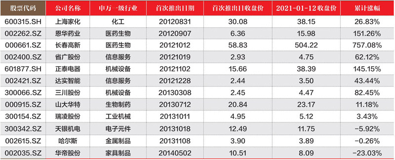 2021.1.6-2021.1.12期间,共计240只股票创一年新高。 创新高个股数量居前的行业(申银万国一级行业分类)分别是:化工(35只)、电气设备(25只)和机械设备(25只)。创新高股票在时间上的分布是:1月6日35只;1月7日28只;1月8日54只;1月11日52只;1月12日71只。 上述股票2021年1月12日总市值之和为259447.43亿元。 2019年年报净利润之和503