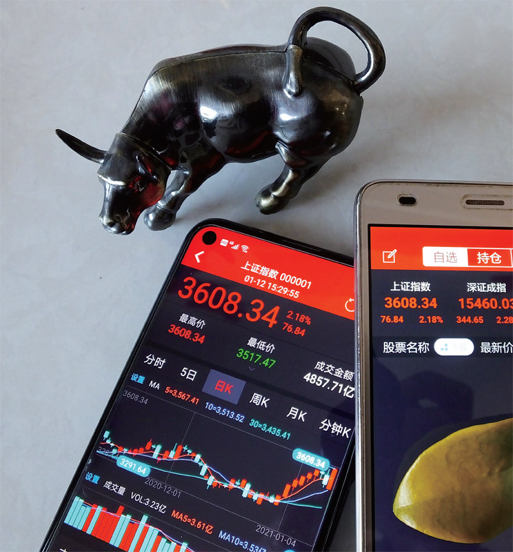 岁末年初,春季躁动如期而至。 2021年头五个交易日,两市成交量均突破万亿元,势能非常强劲。期间沪指上涨2.8%,沪深300上涨5.5%,创业板指上涨6.2%。这样的市场似乎很容易挣钱,但不幸的是,绝大部分股票确是下跌的,全部A股的涨跌幅中位数是-3.5%。 开春第一周,只有约1100只股票取得了正收益,剩下的3000多只股票都是下跌的。指数的风光很大程度上是大市值股票的上涨所致,美其名曰“拥