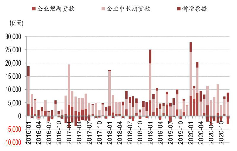 1月12日,央行公布2020年12月金融数据,2020年12月新增人民币贷款1.26万亿元, 同比多增1170 亿元,符合预期;新增社融1.72万亿元,同比减少4821亿元,低于预期。截至12月末,M2同比增长10.1%,M1同比增长8.6%。 12月新增信贷规模与结构基本与市场预期一致。从信贷结构来看,企业融资需求仍偏旺盛,其中,对公短贷与票据融资存在相互替代的现象,对公中长期贷款延续年初以来