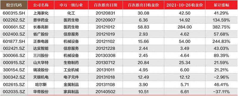 10.20-10.26日期间,共计113只股票创一年新高。 创新高个股数量居前的行业(申银万国一级行业分类)为:机械设备(16只)、电气设备(15只)和化工(11只)。 创新高股票在时间上的分布是:10月20日16只;10月21日19只;10月22日11只;10月25日18只;10月26日49只。 上述股票2021年10月26日总市值之和为49603.44亿元。2020年年报净利润之和为52