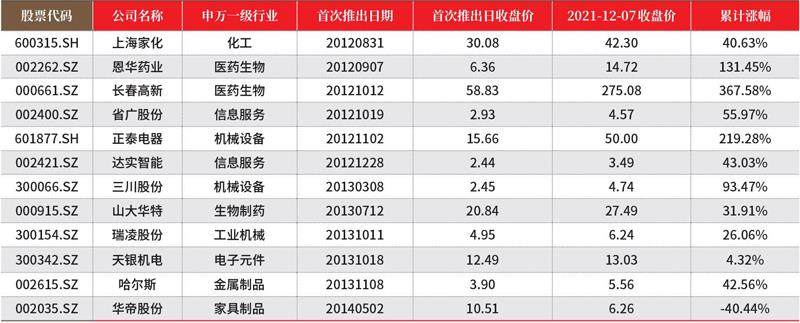 12.1-12.7日期间,共计229只股票创一年新高。 创新高个股数量居前的行业(申银万国一级行业分类)为:汽车(38只)、化工(24只)和机械设备(23只)。 创新高股票在时间上的分布是12月1日41只;12月2日60只;12月3日36只;12月6日44只;12月7日48只。 上述股票2021年12月7日总市值之和为44068.11亿元。 2020年年报净利润之和为598.49亿元,以此