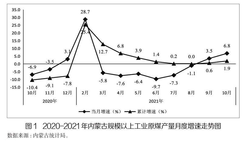 摘 要:实现煤电等能源产品增产保供是当前国家重要的调控方向,内蒙古作为我国重要的能源和战略资源基地,对保障国家能源安全承担着重要责任。9月份以来,自治区全面落实党中央、国务院决策部署,压实责任、主动作为,从政治的、全局的、战略的高度做好煤电保供工作。从10月份数据看,全区能源保供已取得了阶段性成效。表现为煤炭产量增长持续加快,日均产量创2021年新高;电力生产保持增长,有效满足了全区及区外重点区