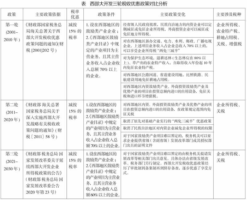 摘 要:西部大开发税收优惠政策自实施以来, 在缩小东西部差距、推动招商引资、促进经济增长等 方面发挥了积极作用。本文通过对三轮西部大开发税收优惠政策进行梳理,分析了内蒙古自治区享受西 部大开发税收优惠政策的执行情况及存在问题,并提出相应的完善建议。