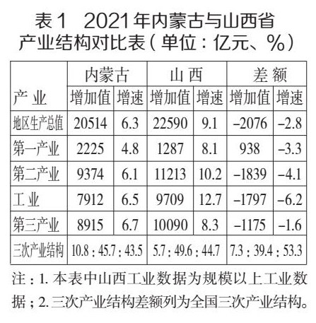 摘 要: 近年来,内蒙古经济总量稳步增长,2021年地区生产总值突破2万亿元,达到20514亿元,居全国第21位。本文以2021年内蒙古、山西、贵州三省社会经济主要指标统计数据为参考对象,选取了相关的宏观经济指标进行分析研究,通过比较经济总量、产业结构、需求结构、支柱产业四个方面,分析了内蒙古与山西、内蒙古与贵州之间的经济差异,并从五个方面提出了促进内蒙古经济发展的建议。 关键词:内蒙古
