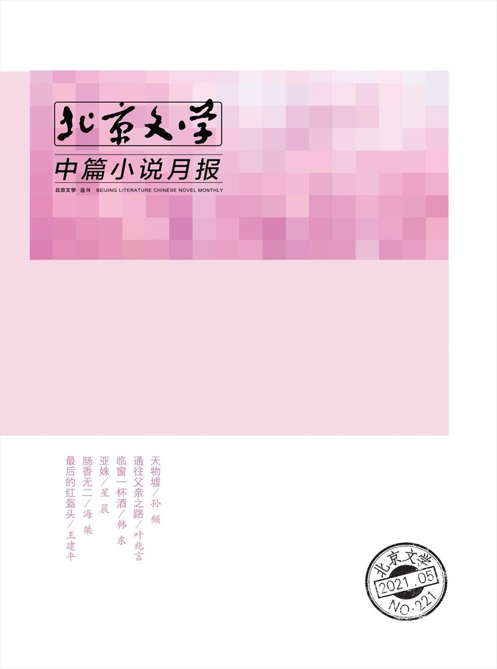 《人民文学》 2021年第4期 妈妈不告诉我/肖克凡 《大家》 2021年第2期 貔貅行/李庆西 飞行术/陈崇正 未来往事/梁宝星 《山花》 2021年第4期 飞蓬尽杯/倪湛舸 《作家》 2021年第4期 发小李文聪/马 南 《花城》 2021年第2期 青城山记/程永新 《延河》 2021年第4期 过故人庄/刘国欣 《朔方》 202
