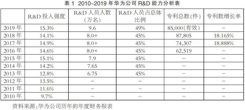 摘要:民营企业作为我国国民经济中不可缺少的一部分,数量庞大,拥有良好的灵活性和自主性。在全球注重创新能力的背景下,民营企业的技术创新能力显得日趋重要。文章运用单案例分析方法,以我国龙头企业—华为集团为例,分别从R&D能力,财务能力,营销能力、产出能力和组织管理能力五个角度对华为技术创新能力进行了较为全面的分析,并对比了近5~10年来华为集团技术创新能力的变化趋势,最后对华为集团未来进一