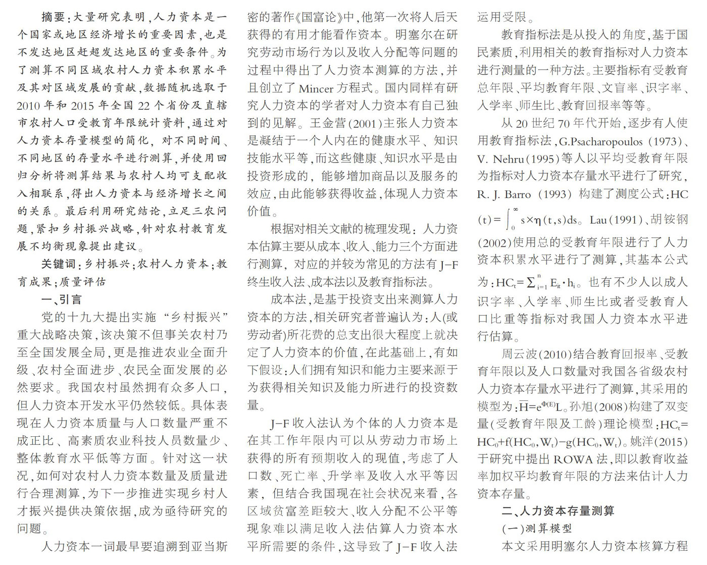 乡村振兴背景下农村人力资本累积水平测算