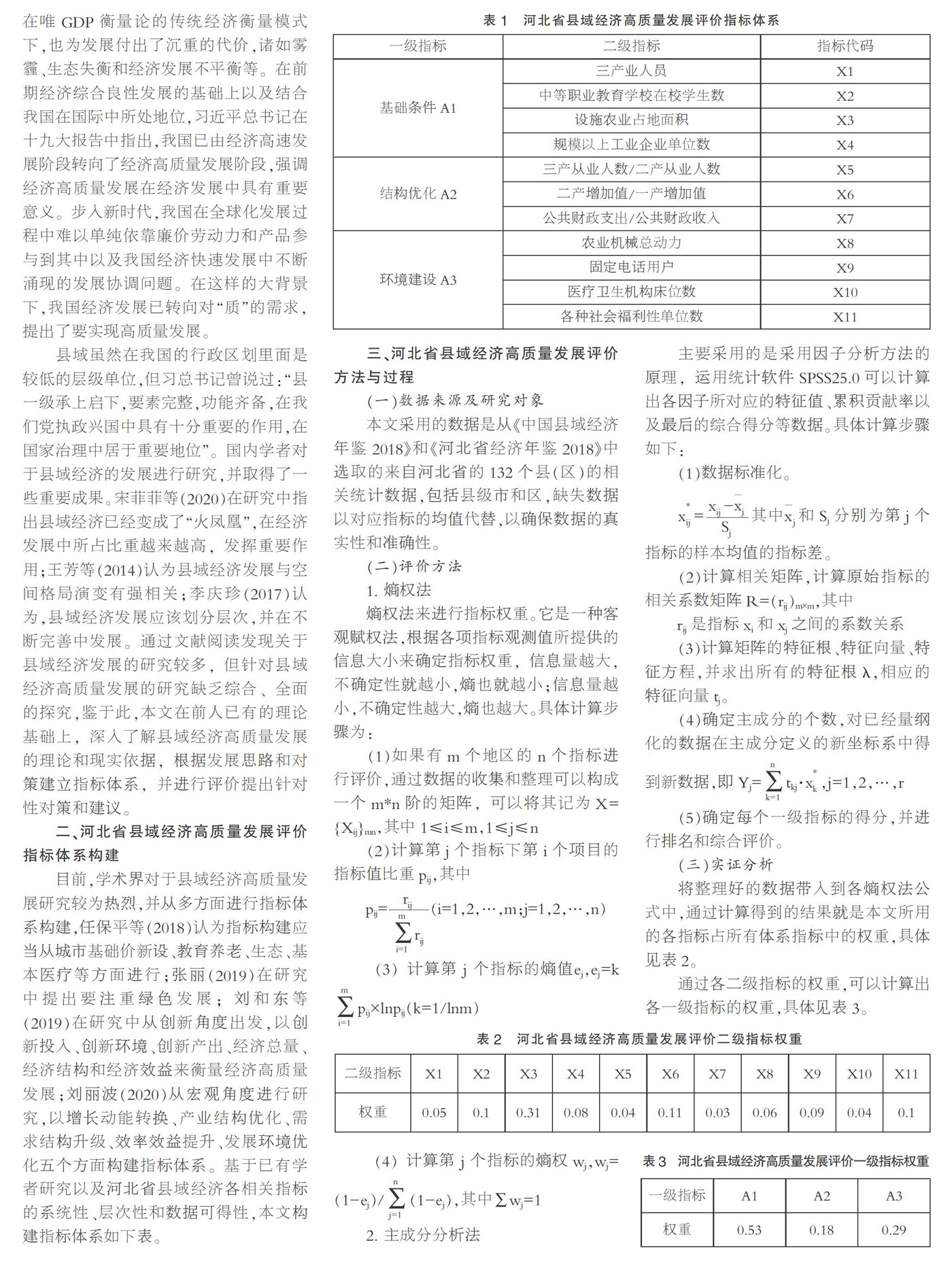 摘要:我国经济已由高速发展转向高质量发展阶段,县域经济发展上升到了国家层面。该文通过以河北省132个县域数据作为样本进行研究,从基础条件、结构优化和人民生活水平三方面构建指标体系,通过熵权法和主成分分析法对各项指标进行分析验证,得到各县的综合得分和排名,因势施策,提出县域经济高质量发展的对策建议。 关键词:县域经济;高质量发展;熵权法;主成分分析 一、引言 我国经济从改革开放就